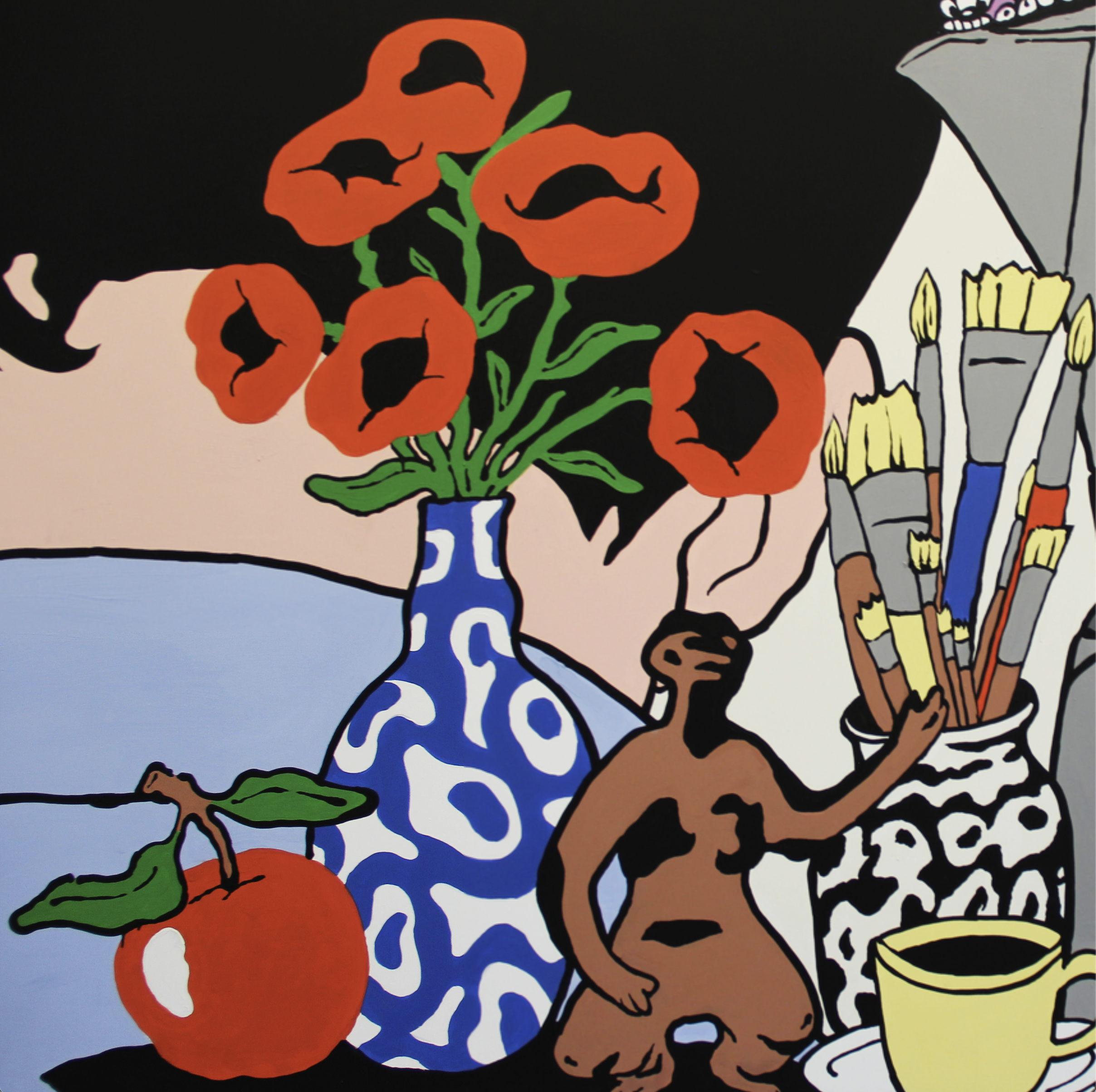 I chose to present the problematic elements that surround us in our daily lives on the walls of the room – such as gluttony and greed, as opposed to the images standing in the center of the room, with which I chose to present the positive elements in our society – such as unity, nature, balance and love between each other and between ourselves.